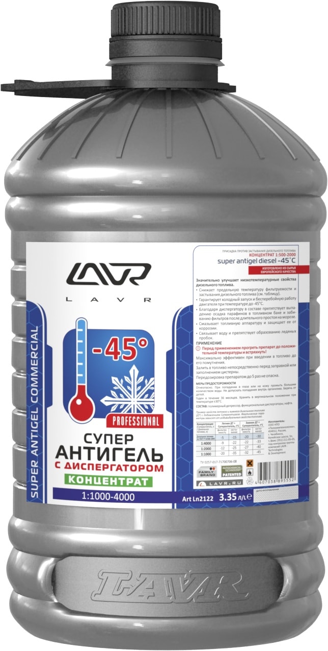 Суперантигель LAVR с диспергатором присадка в дизельное топливо на 13400л 3,4л