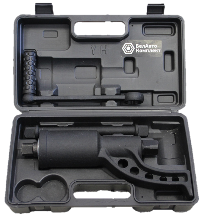 Гайковерт "БелАвтоКомплект" механический ручной в пластиковом кейсе БАК.10017 Предназначен для завинчивания/отвинчивания гаек и болтов при выполнении монтажно-демонтажных работ во всех областях промышленности. Превосходно справляется с демонтажем тяжело нагруженных резьбовых соединений. Основное применение механического гайковёрта такого типа: в качестве баллонного ключа с усилителем крутящего момента (УКМ) для грузовых автомобилей.
