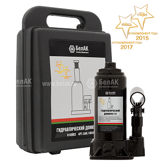 Домкрат гидравлический бутылочный 5т БелАК(БелАвтоКомплект)(Бак.10042) (РФ) в кейсе