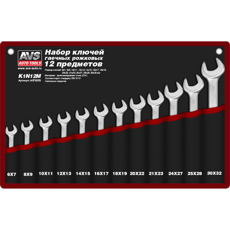 Набор ключей гаечных рожковых в сумке (6-32 мм) (12 предметов) AVS K1N12M