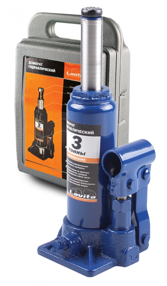 Домкрат гидравлический бутылочный 3т Lavita 180-340 мм, пластиковый кейс LA JNS-03PVC