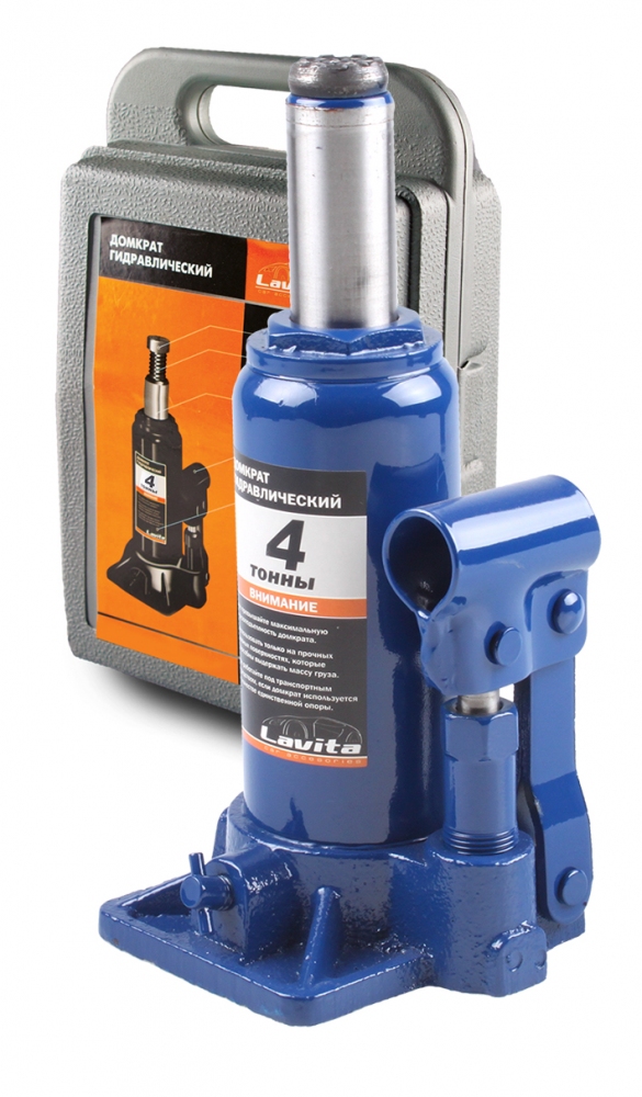 Домкрат гидравлический бутылочный 4т Lavita 180-350 мм, пластиковый кейс LA JNS-04PVC