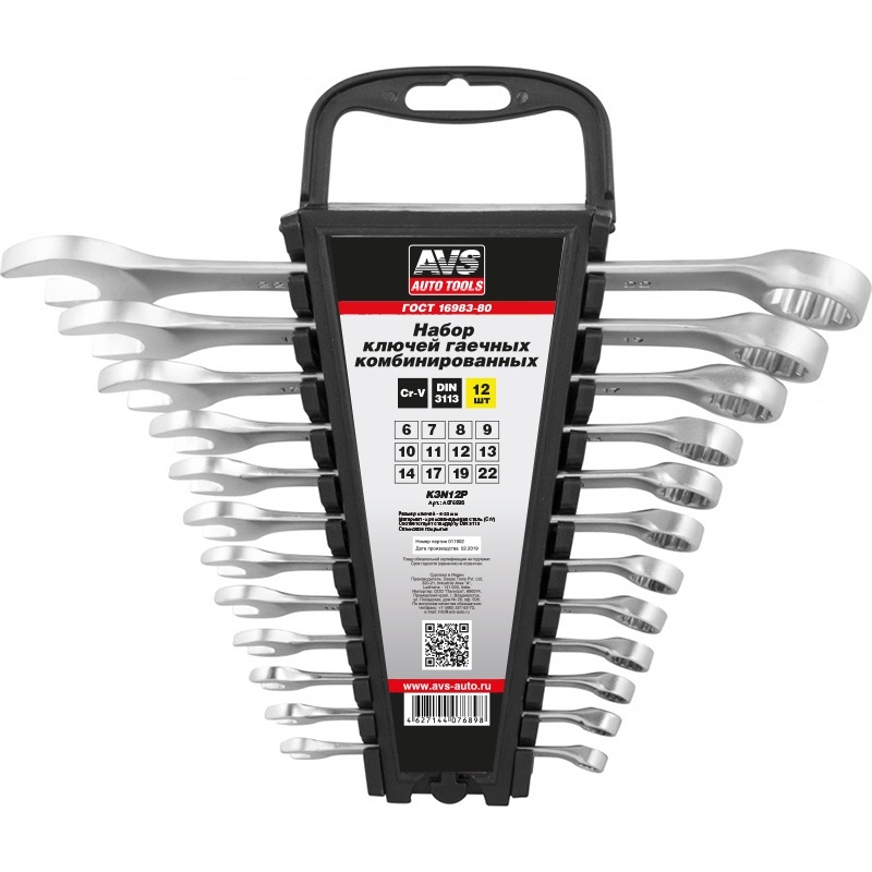 Набор ключей гаечных комбинированных на держателе (6-22 мм) (12 предметов) AVS K3N12P